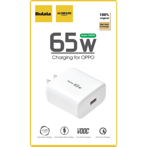 Củ sạc Bulala supper vooc 65W được trang bị đầu ra USB sẽ sử dụng được cho nhiều dòng máytrên thị trường như Oppo, Samsung, Vivo,… đồng thời cũng dùng được cho máy tính bảng, pin sạc dự phòng, tai nghe Bluetooth và nhiều thiết bị khác qua cáp sạc phù hợp.