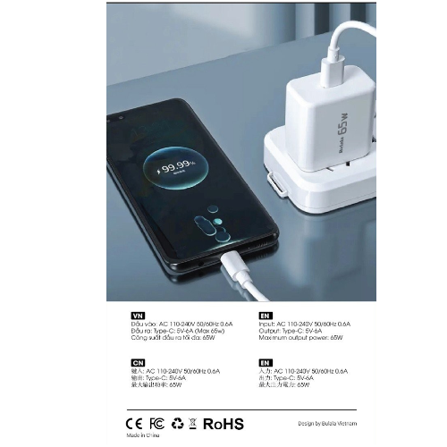 Củ sạc Bulala supper vooc 65W, Với thiết kế sang trọng, nhỏ gọn dễ dàng mang theo và phù hợp với nhiều loại thiết bị là một sản phẩm đáng để bạn sở hữu.